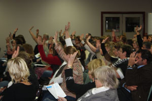 - ‘Put your hands up if you think Australian food regulators are failing to protect our kids,’ I asked our audience. You can see the response to that question (photo above). There was an official representative from Australian food regulators, FSANZ, in the audience.