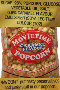Regulators are failing to protect Australian children The popcorn packet (see photo below ) says We DON’T put nasty preservatives and junky stuff in our popcorn. In my opinion, ‘junky stuff’ would include artificial colours but no, the popcorn contains artificial colour tartrazine (102). In Europe, it would require a warning may have an adverse effect on activity and attention in children. We asked people to put their hand up if they thought Australian food regulators are failing to protect Australian children. You can see how many did (at least 95%) – in the photo below, and it was the same everywhere.